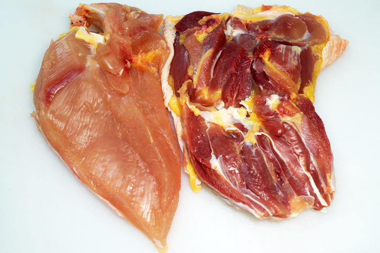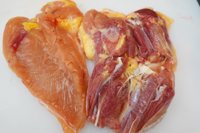 淡海地鶏(雌)のもも肉とむね肉を処理したてを真空パックして急速冷凍した商品です。