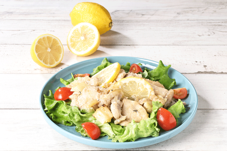 爽やかなレモンと塩麹のやさしい旨みがむね肉をしっとり柔らかく、ネギの香りがふわっと広がります。